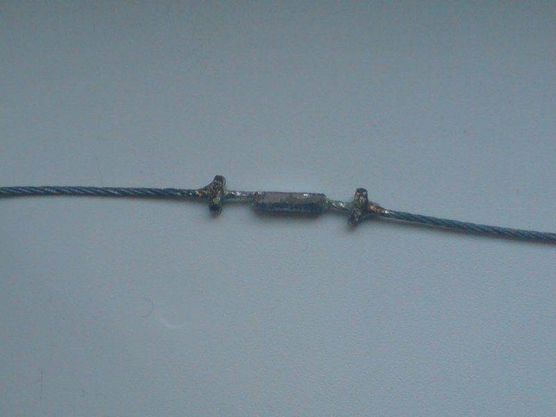 Эти 2 гайки также плющим и паяем на середине троса.Я сначала