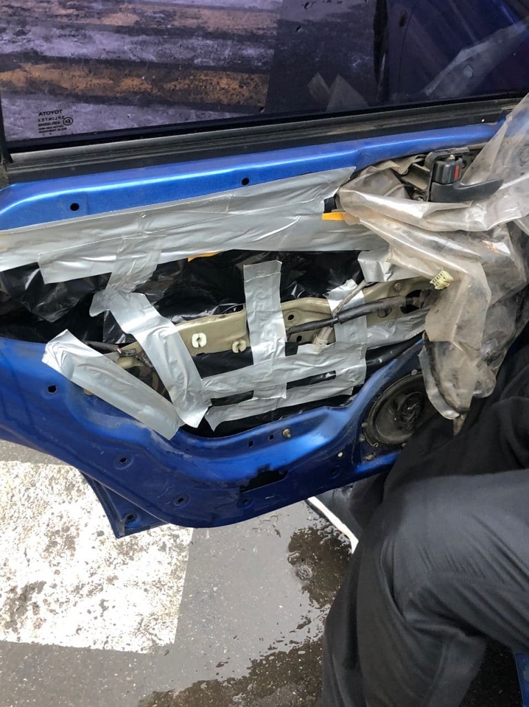 Друзья, значит история такая.. Такая дверь имеет два крепления через шурупы в районе ручки двери и "пепельницы" в дверях. Далее просто по периметру можно пройтись пальцами, дверь на защелках снимается(и одевается) без проблем. Когда идет дождь или на мойке, вода попадает на стекло и вся эта вода стекает в дверь. Далее по дренажным отверстиям стекает как бы от туда. В моем случае родная пленка в двери не сдерживала воду и дренажное отверстие было немного забито, вся вода попадала в салон. Прочистив дренажное отверстие и "апнув" пленку (сделано из плотного черного пакета, разрезанного по необходимым размерам и наклеено внахлест) провели пару тестов просто лить воду на стекло и на автомойке, результаты намного лучше, воды в салоне практически нет, только если очень сильный напор воды будет лить на стекло. Думаю уже как потеплеет вообще все двери пройтись таким методом.