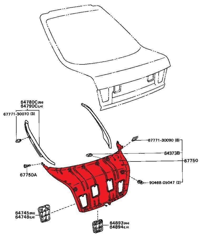 Пытаюсь снять обозначенную на схеме красным панель с двери багажника. Ни одного болта или самореза... Она не поддаётся - грозится сломаться.