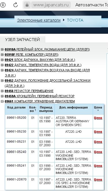 Мастер К. писал(а): Машина Авенсис 1998 года AVENSIS AT22#,AZT220,CDT220,CT220,ST2 КОД МОДЕЛИ AT220L-AEMNKW ДАТА ВЫПУСКА 01.1998 ПЕРИОД ВЫПУСКА 10.1997-07.2000 ДВИГАТЕЛЬ 4AFE 1600CC 16-VALVE DOHC EFI ТРАНСМИССИЯ MANUAL TRANSMISSION Меня немного смущает ошибка 37, может на Авике по другому? И не совсем как на Карине Е  ... Надо бы по осторожнее с замерами... Добавлено спустя 4 минуты 38 секунд:У меня где-то Букварь по Авикам, гляну. А пока я бы воздержался  ... ЭБУ вроде разные Добавлено спустя 7 минут 55 секунд:Мастер К. писал(а): Сделал фото А фото ЭБУ можно сделать? На Карине-Е (рестайл) его номер 89661-05120, BOSCH MOTRONIC.
