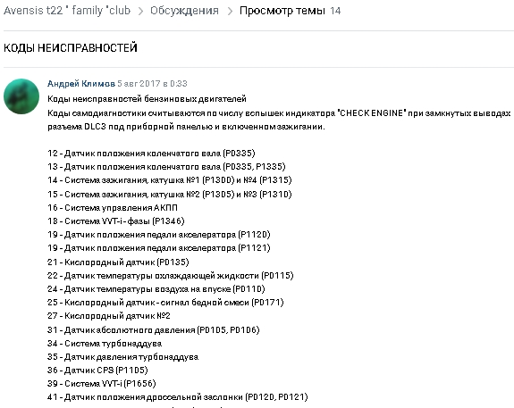 Azamat_630 писал(а): У меня где-то Букварь по Авикам, гляну. В общем коды ошибок совпадают с Кариной Е, но ЭБУ разные, ПИНы тоже. На Авике совсем по другому  . Как вариант, убедиться в неисправности цепи этих датчиков, можно вытащить предохранитель EFI и сбросить ошибки. Потом отключить разъёмы от МАР-сенсора и ДПДЗ, открыть зажигание и провести повторную диагностику. Если вылезут опять ошибки 31 и 41, то дело в них и тогда надо искать причины.