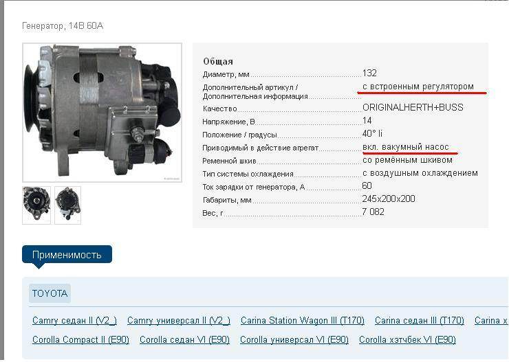 А с чего ты взял, что на нём есть насос? Я привел картинку для примера и подписал, что "запасной генератор у меня как на картинке" Вот он на схеме http://www.japancats.ru/toyota/Parts.aspx?Model=9a27b155-907d-437e-aa06-769b232737d0&Unit=59583907-015b-4ef8-ab12-d02325979b12номер 27060-64130 вот тоже самое только другой фирмы http://www.exist.ru/price.aspx?pid=99901446&sr=15&Cat=Toyotaтам нет никаких крышек и насос за шкив туда никак не всунешь. Добавлено спустя 1 минуту 4 секунды:siam_ писал(а): Я ж не знал ,что второй у тебя не такой. у меня как раз такой Добавлено спустя 25 минут 45 секунд:Сегодня видать звёзды сошлись правильно. Пока мы с тобой спорили я нашел с какой машины у меня генератор Вот один в один и даже фишка вверх http://partsib.info/toyota/corolla/generatory/toyota-corolla-generatory-ce104-2c-1993-000029684o12/От модели Короллы и стал плясать. Вот оригинальный номер 27020-64310 А вот аналог от Jakoparts J5112080 с картинкой и описанием