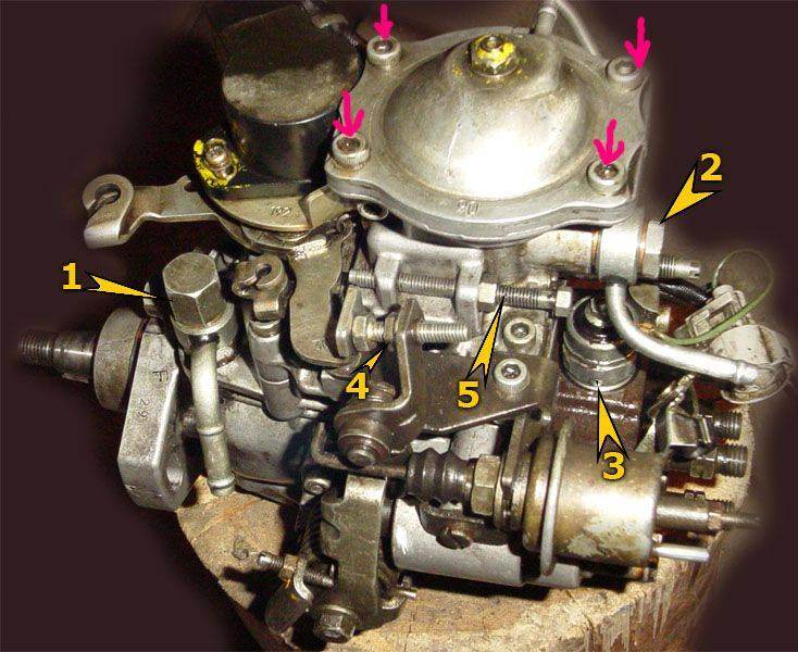 открутил четыре винта (красными стрелками обозначены), снял крышку, протер мембрану резиновую,немного смазал ее края, все собрал обратно. Никаких регулировочных винтов на ТНВД и на этой крышке я не крутил. Но после этой операции машина стала "Очень Тупить" на низких оборотах, от 1000 до 2000 об\мин даже на второй передаче -разгоняется как черепаха, и только диапазоне 2100-3500об\мин (когда турбина выходит на раб.обороты) появляется нормальное былое ускорение. ЧТО могло нарушится??? я понимаю что эта мембрана всего лишь добавляет цикловую подачу топлива в момент выхода турбины на раб. обороты, а вот регулировочный винт что находится в крышке -имеет ли он отношение к общей цикловой регулировке топлива в ТНВД?