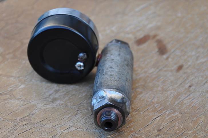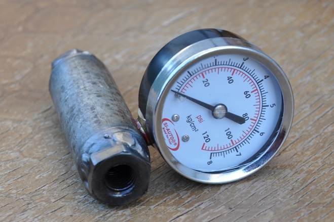 1. Отрезаем от шпильки кусок резьбовой части такой длины чтобы он почти полностью закрутился в гайку и осталось миллиметров 8-10 для закручивания в крышку насоса. Можно померять по родному болту обратки. 2. В куске шпильки сверлим сквозное отверстие Ф4-5 мм и вкручиваем его в одну гайку чуть не до конца. 3. Прихватываем шпильку сваркой к гайке. 4. В трубке сверлим отверстие и нарезаем под резьбу манометра. Тут зависит от того какой у вас манометр. У меня был с резьбой 1/8". Метчека такого я не нашел поэтому взял черновой метрический М10 шаг 1. Черновой потому, что после чистового манометр очень легко закручивался, надо было потуже. Для герметизации использовал резьбовой герметик. 5. Свариваем вместе гайку со шпилькой, трубку и вторую гайку. Усё! Переходник вкручиваем в ТНВД, болт обратки в переходник. Не забываем про медные шайбочки. Теперь небольшие нюансы: Манометр лучше использовать виброустойчивый (залит глицерином). Я сначала попробовал обычный от компрессора - стрелка прыгает +- два очка и нифига не понятно сколько там. Манометр под верхний край - позволяет закрутить переходник без риска упереться во что-нибудь. Трубку изначально взять в два раза длинее, отверстие сделать в середине, наживить манометр и отрезать лишнее. Это для того чтобы манометр не оказался шкалой вниз. Процесс изготовления не фотографировал. Вот фото нужных гаек и готового переходника..