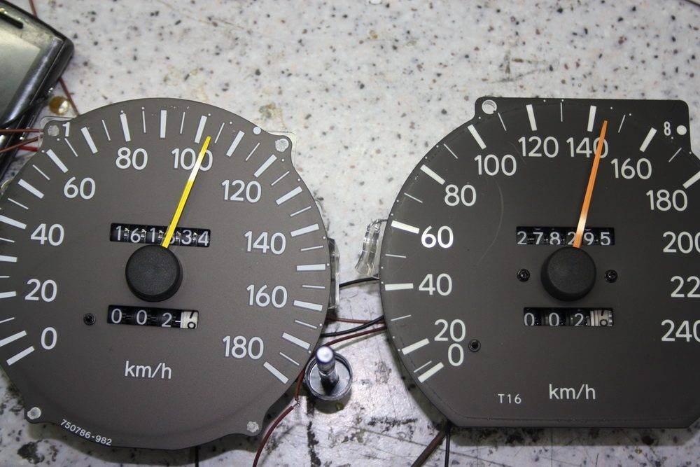 Сегодня замерил скорость GPS навигатором - скорость как на спидометре так и по GPS (кметр в кметр). Хотя вроде как по шинному калькулятору из за 205/55 R16 должна быть на 6 процентов больше. Но где то форуме видел, что тойота вроде как на 6 процентов как раз с завода занижена. Зимняя резя 185/65 R14 попробую через недельку на ней замерить. Доволен как слон, что так все закончилось со стрелкой спидометра. Теперь надо в регулировку освещения внедрять резисторы.