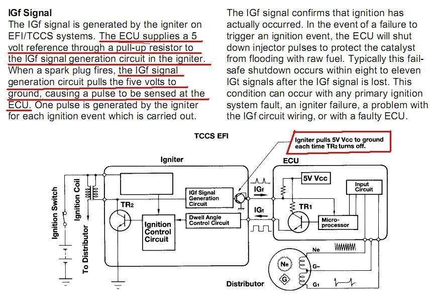 Отсутствие сигнала "IGf" на ECU в течение 4-х последовательных циклов зажигания Коды Toyota - Двигатель - Система TCCS (в т.ч. блинк-коды)