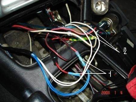 Теперь подключаем "подсветку" и "Зажигание" 2 это подсветка, 1 это зажигание. Как снять пепельницу и прикуриватель описывать не буду.