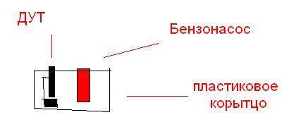 Цитата: Не совсем понятно о чем реч, лучше бы в картинках. Картинку прикрепил. По ней видно, что та часть корытца, над которой висит ДУТ на пару сантиметров выше, чем на тем местом, где находится бензонасос. Цитата: тоже не понятно, поплавок вообще в стороне от корытца, когда бенза нет ложится на дно. Эм... у меня он находится в пределах корытца. И бензонасос и ДУТ находится внутри корытца, которое находится в бензобаке. Цитата: Может поплавок работает (движется), просто датчик не исправен, пробовал снятый датчик подключать к проводке и проверять? Пробовал, он исправен, а как только установишь, перестает работать и зависает стрелка на самом верху или наоборот падает вниз. Видимо от того как расположился поплавок, в момент установки. Цитата: Ни каких хитростей, вставил, прикрутил и все. Если бы не упирался поплавок в дно, то было бы нормально, а вот упирается по какой-то причине, вот и пытаюсь выяснить, то ли бак помят, то ли я не так устанавливаю.