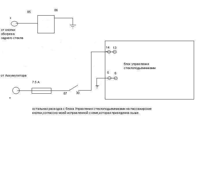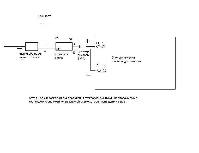 Шурик все соединенно согласно схеме... не работают и все тут... пойду еще раз перепроверю соответствие схеме Добавлено спустя 8 минут 55 секунд:вот проверил-все моторчики работают.. я вот подозреваю что общий + у них не контакт под номером 5 на каждой из кнопок....а какой то другой-вот только какой...блин блинский... Добавлено спустя 3 минуты 29 секунд:Sanchis85 писал(а): то фига они работать будут! Саш я твою схему прочел...там сноска вверху "для левого руля" дорогой ты мой....дай пожалуйсто теперь для правого руля... стопудово-5 контакты на кнопках не общий + Добавлено спустя 5 минут 1 секунду:у меня вообще еще в запасе лежит еще один блок управления...вот поставил его счас...дак он вобще внутри жужит...трещит...на кнопки не реагирует... Добавлено спустя 22 минуты 52 секунды:совершенно верно. общие контакты не пятые а четвертые блин. книгу смотрю через адобе реадор....как сделать фотку и выложить сюда? Добавлено спустя 39 минут 37 секунд:и так схему предоставленную Димкой изменил ниже она приведенна и она РАБОТАЕТ ура. теперь надо купить провода 2*5 мм....в магазе каком нить и я буду как городской человек....а то все весла весла весла.... Еще раз спасибо всем. Если тема нужна форуму-оставьте....если же нет.закройте. я бы оставил-улыбко водителей на форуме с десяток-может пригодиться.