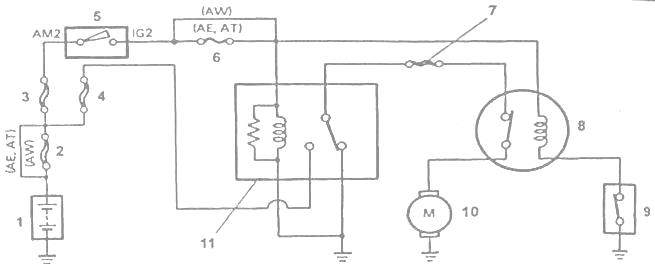Цепь. Замок зажигания.реле двигателя/11/ реле вентилятора/8/ датчик на радиаторе.Предохранители.Весь набор который участвует в запкске и остановки вентилятора.Но почему у датчика на радиаторе два контактка и для чего.