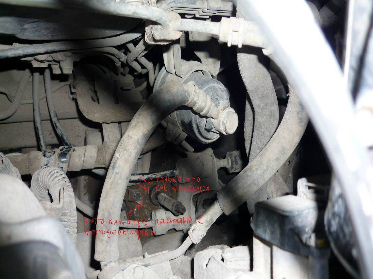 вот там под цифрами!!! 2-это ухо куда болт вворачивается я там все почистил и как будто он полностью привязан к коробке,а вот под цифрой 1 там такое ушко есть под него отверточку можно вставить и когда вверх вниз отвертку делаешь она буквально на 1мм двигается!!!! я правильно думаю посмотри на фото там все показано!!!!