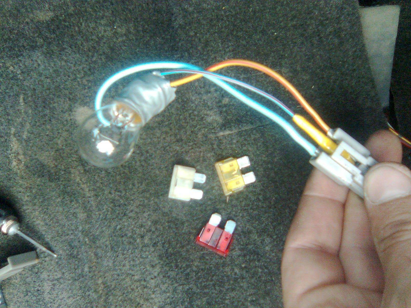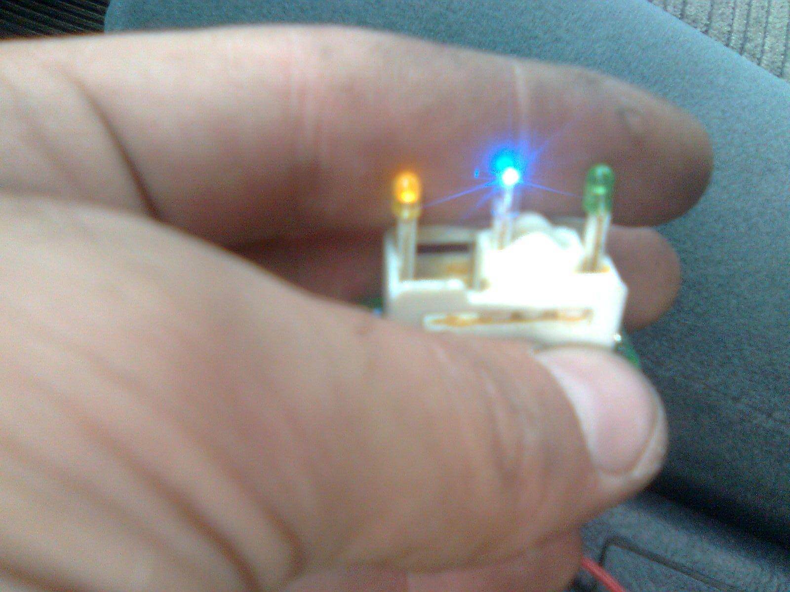тестим кнопку (на заднем плане предохранители - благодаря самоотверженным усилиям которых все же была найдена правильная распиновка. Правда к их усилиям добавилось 4 по 0,5 пивка. Без них никак правильная распиновка не получалась  ) Вложение: