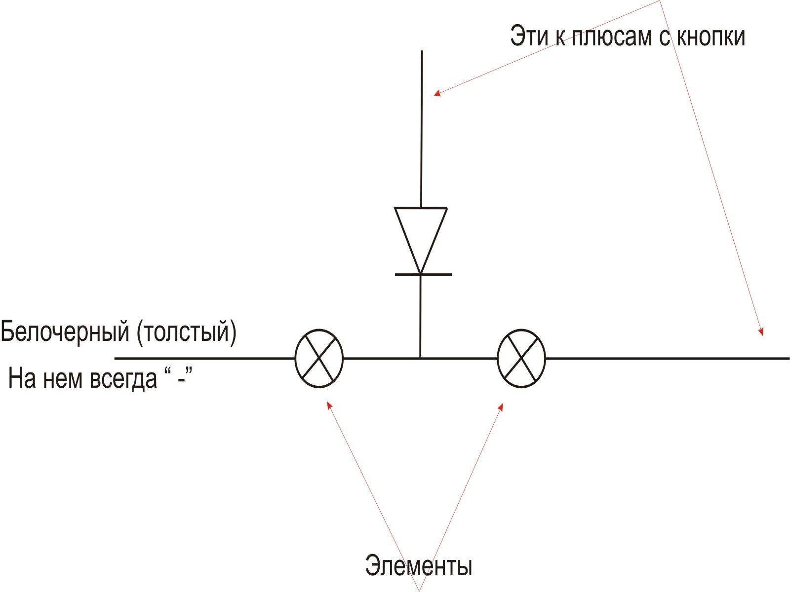 Женя-BOND писал(а): кроме как с помощью реле пока ничего не приходит в голову, как такое сделать, вопщем подумал я - вот схемка подключения жопогреющих элементов на 2-а режима, нужен лиш диод- кто может сказать какой взять по мощности (ток потребления элементом менее 3-х ампер) ?- не шарю я- гуглить нада...  Д-242 пойдеть? прошу учесть, что с кнопычки проиходит плюсик, а в этот момент на второй провод приходит минус... Вопщем прошу критики