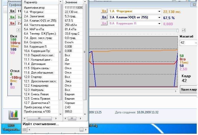 Не могу даже толком снять показания двигателя программой - собственно из-за того, что двигатель не работает нормально...