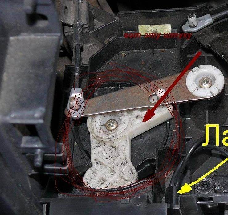 у мну не такая система.то что показано стрелкой стоит внизу и через прорезь двигает рычаг троса.