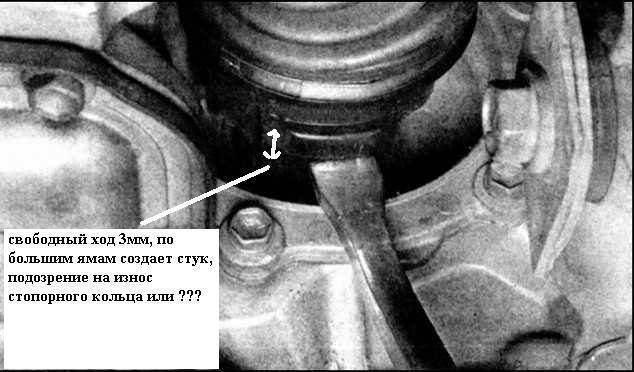 наружный шрус сваркой капнул, собрал, класс, по по маленьким ямкам стука нет, поехал на большие ямы, стук опять появился только по большим ямам, залез под машину, обнаружил еще свободный ход внутреннего шруса в коробку 3мм, покачал машину и понял что там и стучит, подозоение на износ стопорного кольца, у кого какие домыслы!?