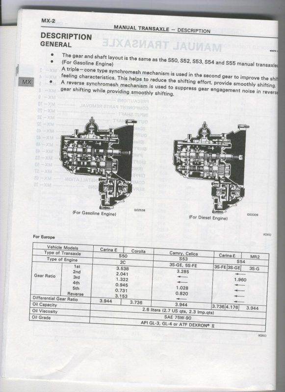 Да не, в книге нет косяка, у меня в мануале по Карине 2 было написано "в зависимости от типа коробки C50 или S50, в один тип надо Декстрон заливать, а в другой трансмиссионное".Какое масло в какой тип коробки заливаается уже не помню. А как узнать какой тип коробки в мануале не написано,я только потом вычитал на дроме, что тип КПП указывается на шильде под капото.Помню,что в мою должен заливаться декстрон, а было залито обычное трансмиссионное. Первая коробка умерла через 1,5 года, сначала начала хрустеть при переключении с 1 на 2 передачу, потом и на 3 а потом и 5 стала вылетать, подозреваю что это все из-за неправильно залитого масла в коробке.