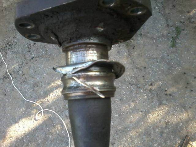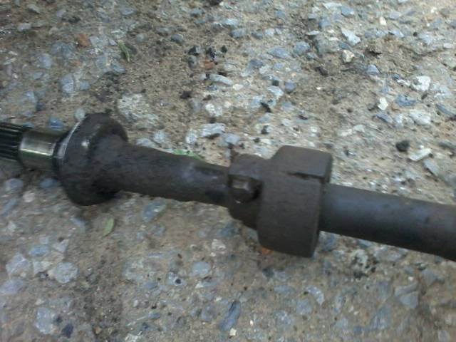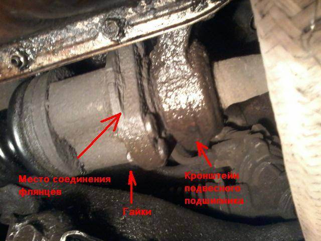 5. Откручиваем 2 болта крепления кронштейна к кузову и вынимаем палку, часть со ШРУСами легко укорачивается нажатием рукой и нам не мешает. Положение флянцев относительно друг друга можно не намечать, там 2 направляющие и по другому соединить их невозможно.