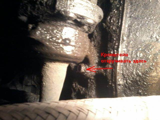3. Снимаем приёмную трубу, она нам будет мешать откручивать кронштейн подвесного