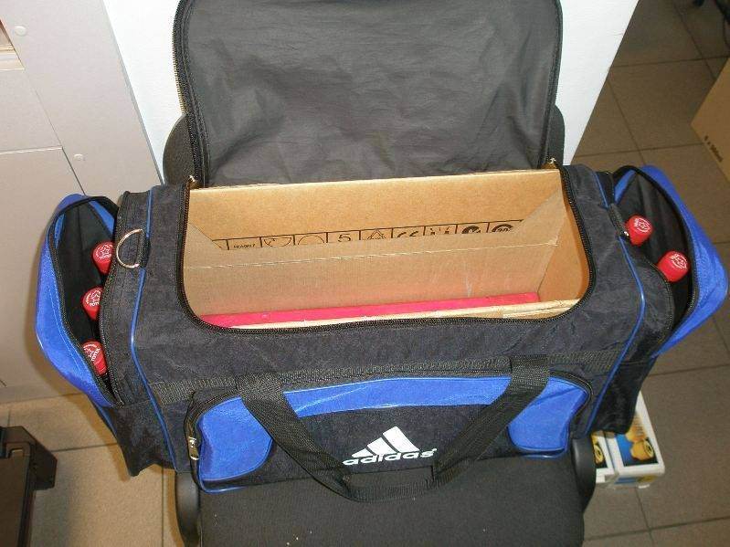 Надоело мне, что у меня постоянный бардак в багажниках, и все "нужное" валяется. И когда нужно пересесть в другую машину, приходится все перекладывать, инструмент, огнетушитель, компрессор, трос, знак аварийной остановки, коробку с топливными присадками ТОТЕК и т.д. Решил все сложить в одну удобную сумку, что бы просто взять сумку и переставить из багажника в багажник. Подобрал недорогую сумку в которую все поместится, подбирал под самую длинную вещь - знак аварийной остановки. Внутрь большого отделения, подобрал и вставил точно по размеру, картонную коробку для удержания формы сумки.Коробку пришлось разобрать и склеивать уже внутри сумки, иначе никак было не вставить. передний карман должны хорошо поместится плоские не тяжелые мелочи, а боковые как раз отлично входят 6 бутылок с присадками или бензином.