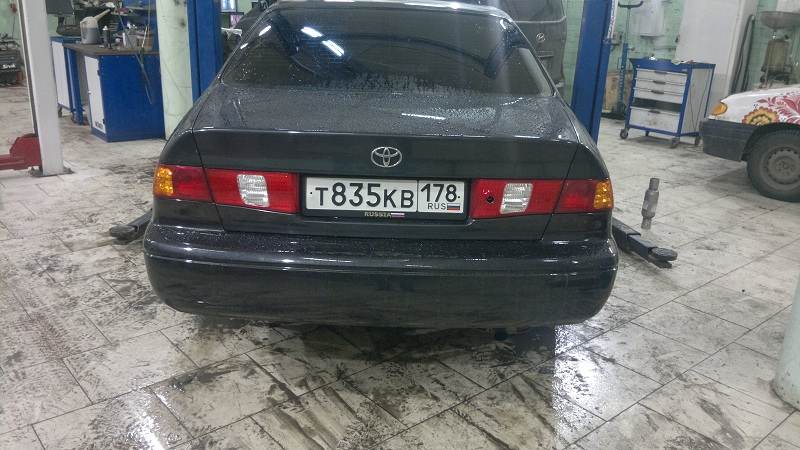 Вообщем продал я свою Карину,увезли её в Барнаул. Осталась Камри и еще одна тойота. Что могу сказать ,Карина оставила только хорошие воспоминания. Надежная как самолет и безотказная как автомат Калашникова. Совсем недавно на ней в Минск из Питера ездил,даже не сомневался ехать на ней или нет, однозначно ехать. За неделю 3300 км.проехал.Всё абсолютно Ok. Пусть и дальше радует нового хозяина. А вообще за 8 лет было 3 Карины,остались только положительные воспоминания, конечно же были и неприятные поломки, но это не что по сравнению с тем сколько эти машины могут ездить и не ломаться. Насколько они выносливы в наших условиях. Респект тойотам 90-хх. Сейчас езжу на Камри SXV20 американка 5S-FE, была на автомате,но предпоследним хозяином переделана на механику. купил её в не очень хорошем состоянии(разбиты передние рычаги, рулевая тяга была не прикручена. разбиты рулевые наконечники, передние тормозные диски были убиты на столько, что при торможении создавалось впечатление, что руль сейчас оторвется - это по подвеске, теперь по кузову: задняя левая дверь требует замены, сгнила до дыр, крыша с двумя вмятинами, а так к целом ещё в очень хорошем состоянии не смотря на то , что машина 99 года.) Подвеску сделал сам, нет ни чего сложного,также поменял диски и тормозные колодки передние. Покрасил морду целиком . так как машин битую покупал. В планах много ещё чего предстоит сделать. надеюсь, что всё получиться. Комфорт в Камри лучше чем в Карине, шумка лучше,места больше, но у Камри подвеска более валкая. Вообщем буду добавлять сюда информацию по эксплуатации машины, может кому-нибудь будет интересно. В ближайшем будущем планирую поменять крышку багажника на рестайл под евро номер, а то задний номер прикрученный к заднему бамперу, как то не нравиться, и заднюю оптику. Ну и пару фото.
