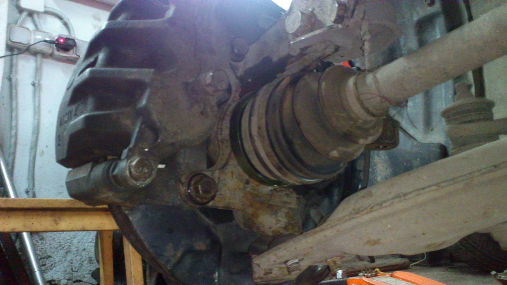 Передние тормоза от Калдыны 215,двухпоршневые,задние дисковые от Селики 241,вакуумный усилитель и ГТЦ от Карины Е Мотор на месте,ждет проводки Вложение: