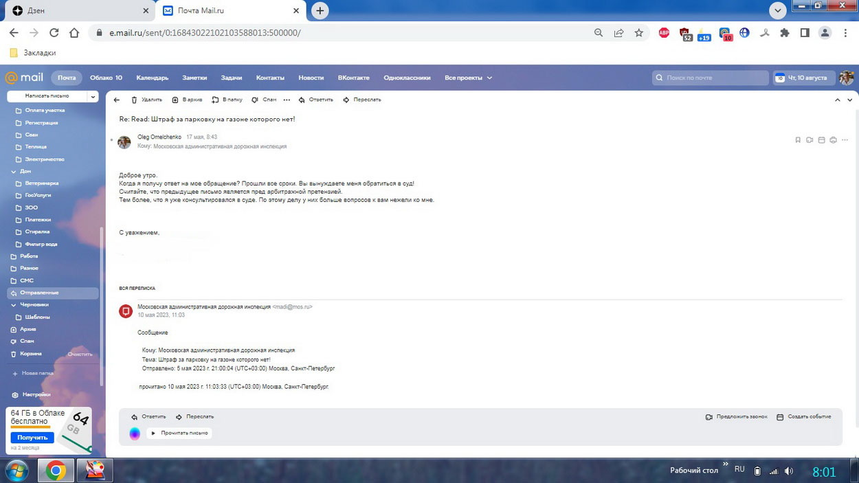 Все началось с того, что пришел штраф за парковку на газоне около дома. Есть у нас "Активный Гражданин", который фотографирует все подряд и отправляет в МАДИ и от туда прилетают письма "счастья" Прилетело и мне. Но платить особого желания не было, тем более, что фото/видео фиксации нарушения не было и место было отмечено не правильно. Написал им письмо, ответ был неожиданным: