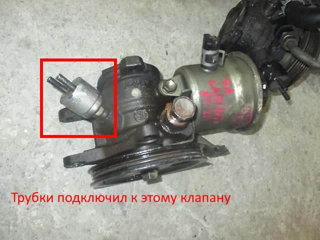 Всем доброго времени суток! Имеется Toyota Carina E 1.8, 7A-FE, 1997г.в., зелёная(742)  . Сегодня была произведена замена квадратного насоса ГУР на круглый в связи с кончиной квадратного. При чём, в комплекте с круглым насосом не было его родной клапанной системы (та, которая внутри штуцера высокого давления) и самого штуцера. Была успешно пересажена со старого насоса с квадратным баком, дырка от клапана повышения оборотов на штуцере была заглушена, вакуумные шланги были подключены к родному клапану круглого насоса. Более подробно - на рисунках во вложении. Собранный франкенштейн даже заработал но, только не на холостых оборотах. На холостых оборотах усиление руля как таковое отсутствует, даешь на ~200 оборотов выше и всё становится ОК. Кто-нибудь с подобным сталкивался? В чём может быть проблема? Вложение: