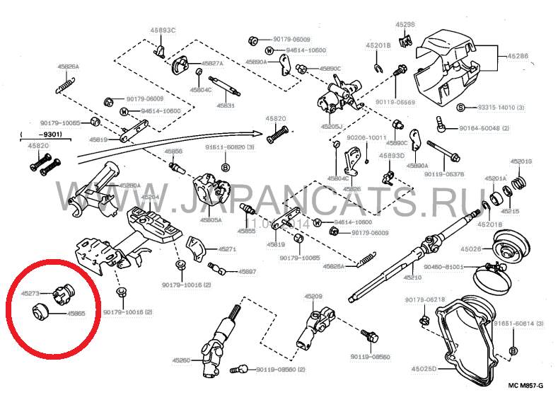 Zabik У тебя колонка не наклоняемая и уже английская, на твоей схеме их нет, вот номера которые я себе ставил, не факт что тебе подойдет Toyota 45865-12060 Втулка рулевого вала Toyota 45273-22020 Втулка рулевой колонки