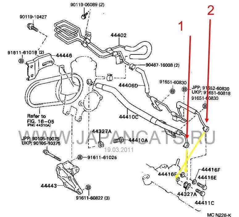 у меня проблема: установил перебранную рейку на подрамник, собрался прикрутить штуцера к корпусу червяка - дилемма: красными стрелками показана правильная (в соответствии с рисунком с экзиста) установка 1го и 2го металлического кольца под штуцеры, но у меня (вследствие того что штуцеры разные и под них металлические кольца тоже разные) получилось собрать только так (желтые стрелки).