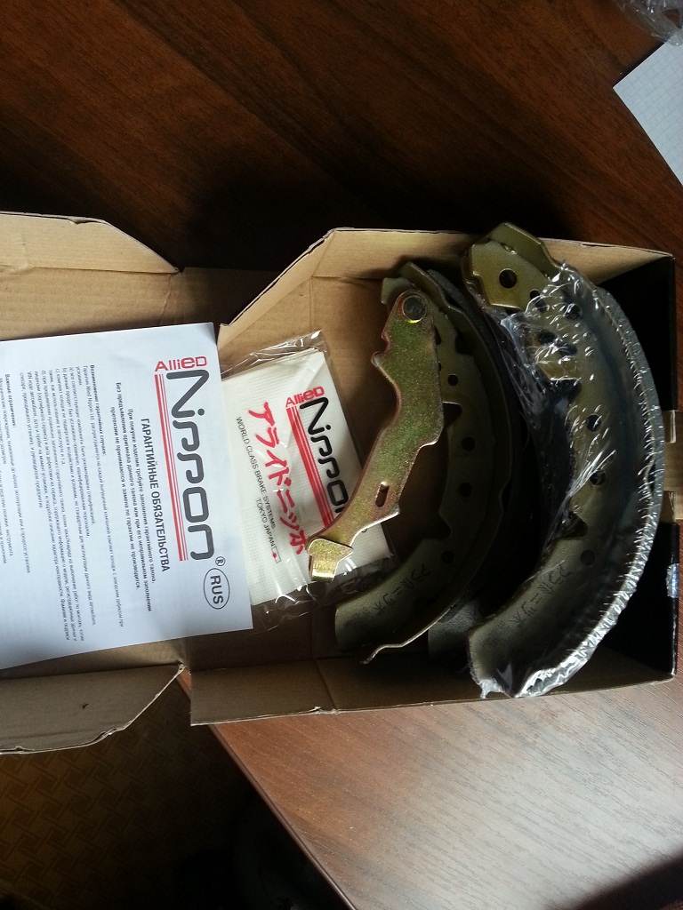 Настигла беда, при заднем ходе машина не ехала, а вперёд всё нормально, что то блокировало заднее колесо, снял барабан, отлетела накладка колодки. На данный момент из аналогов за не очень кусачие деньги остановился на Allied Nippon ABS0121 цена 1045 руб система Лукас/Трв. Раньше хотел покупать Ferodo FSB591 , но они сейчас 1877.. Сделаны добротно. В комплекте даже салфетки, для очистки перед установкой, но обычные сухие не влажные.... и инструкция. Солдатики почти сгнили и пластинки пружинящие в не очень хорошем состоянии, купил от Волги как тут и писали, подошли хорошо, мне даже эта система кажется проще и удобней за 26 рублей))) Всё почистил, не много смазал. При установке, что бы всё проще поставить, мне помогло: 1. сдавить поршня во внутрь 2. ослабить из салона трос ручника и конечно убрать буртик на барабане, мой барабан с завода 97 год, по износу 50% ))) 200,5 мм максимум 201, денег нет пока оставил старые.3. последовательность сборки была такая: цепляем ручник в ушко - сразу крепим солдаты на колодках чтобы они не болтались - нижняя пружина-автоподводка-верхняя пружина- и маленькая пружинка с планкой для автоподводки. Ручник сделал на 5 щелчков. Делал это первый раз, теперь с закрытыми глазами смогу) Этот пост так просто для инфы))