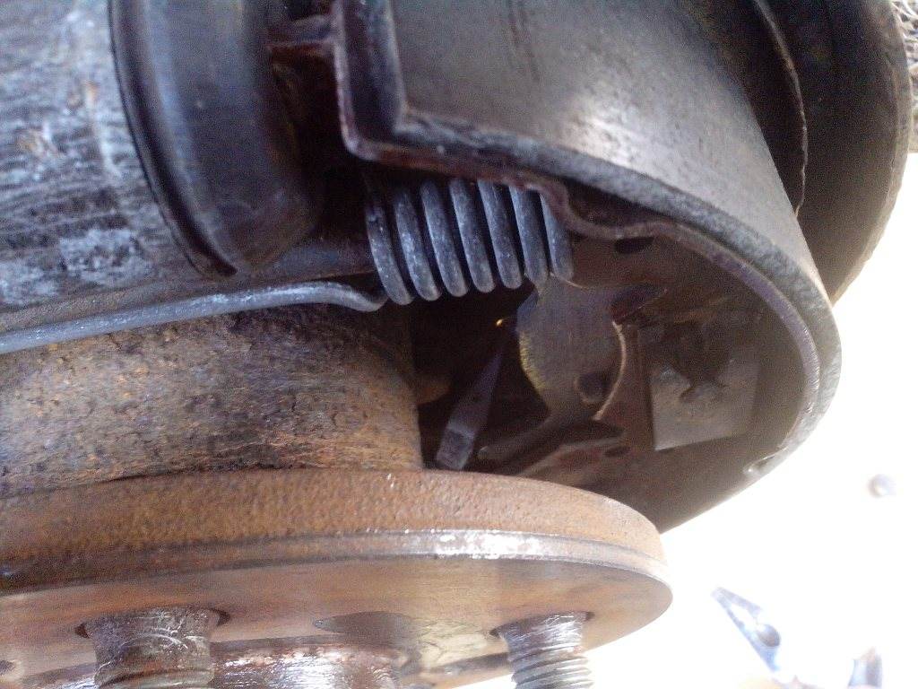 Много народу неправильно разбирают рестайловые задние барабанные тормоза, сдирая барабан с колодок посредством двух болтов. У рестайловых сверху отсутствует окно напротив трещетки, чтобы свести колодки, я поступил следующим образом: ослабил из салона ручник оборотов на 7-10, снял резиновую крышку на задней части тормозного щита (по ходу движения) и отверткой отжал рычаг ручника и колодки свелись, просто у меня подклинивает тросик и сами колодки сводится на хотели. См фото Вложение: