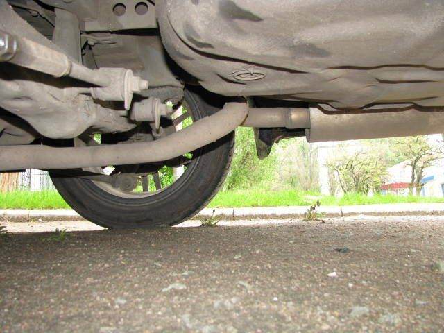 Когда перебирали выхлопную систему, приварили повыше и ничего нигде не выступает.