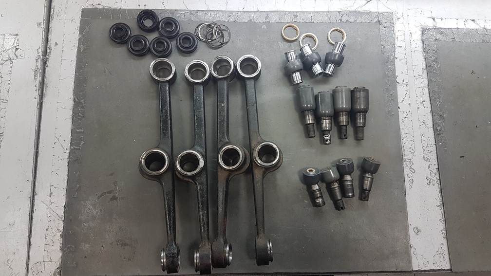Всех с Наступающим! Разобрал все рычаги. Вынул все пальцы с втулками. Некоторые проржавели очень сильно. У меня есть свободные пальцы. Буду импровизировать Делаю исключительно все после работы. Поэтому медленно и не спеша. Далее следуя тех процесса,- Пескоструй, сварка, сборка, покраска. Продолжение следует