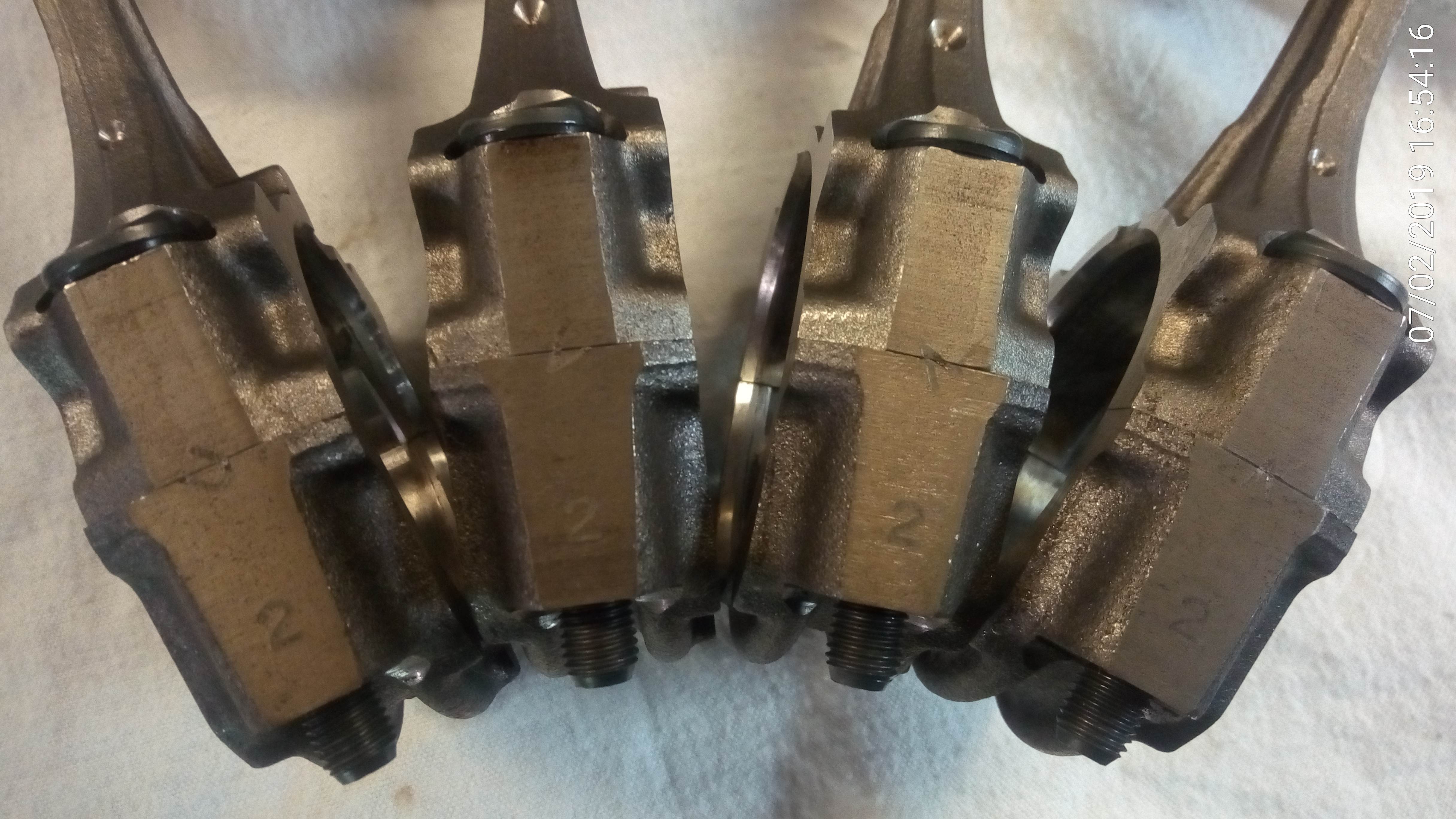 Немного по шатунам. Некоторые мотористы метят керном шатуны и их крышки,чтоб не перепутать,они индивидуальны. У Тойоты это не требуется. Метки уже есть с завода,крышки не перепутать местами,а очередность расположения легко после разбора записать на бумажке Буквы на бугелях в разных наклонах Вложение: