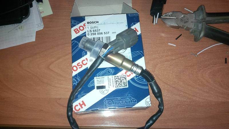 Не сочтите за некропостера  Поменял и я свою лямбду. Стал что то расход напрягать в последнее время. По Мультитрониксу на ХХ впрыск 2,5мс (иногда перепрыгивало после перегазовки на 3,8мс). Расход 2,2л/ч на ХХ. Собственно это и дало повод задуматься. Просматривая инет на предмет замены кислородного датчика, попался ролик про дэу нексия, где после замены у человека мультитроникс показывал расход 1л/ч. Понятно, что на дэу двигатель 1.6 , а у меня 2.0, но не до такой же степени! Разумеется выбрал вариант самый дешевый, т.к. в кармане в последнее время мышь повесилась... Был выбран (благодаря нашему форуму) и приобретен BOSCH 0 258 006 537, стоимостью 1200р. Защитный кожух выпускного коллектора был откручен на удивление легко. Ну и сам датчик открутился обычным накидным ключем на 22. Что приятно, в ключ спокойно проходит тойотовская фишка. Дома, в спокойной обстановке, фишки были откусаны, поменяны местами и срощены. На фото все есть. Бошевский термозащитный кембрик был собран "в гормошку" и зафиксирован изолентой. Провода решил не паять, а крепко скрутить и каждую скрутку в термоусадочный кембрик. После чего изолента снята и закрыто все это безобразие термокембриком бош. Вообщем всё, получилось изумительно. По факту, расход на ХХ прогретого двигателя снизился на 25% - около 1.5л/ч, впрыск до 2мс. З.ы. Есть подозрение, что старая лямбда на моем моторе стоит с рождения, а только я прочесал на нем более 480тыс. Столько лямбды не живут, подумал я, и даже не стал проверять её работу. Вот поймал на мультитрониксе даже меньше данные: расход 1.3л/ч, впрыск 1.86мс
