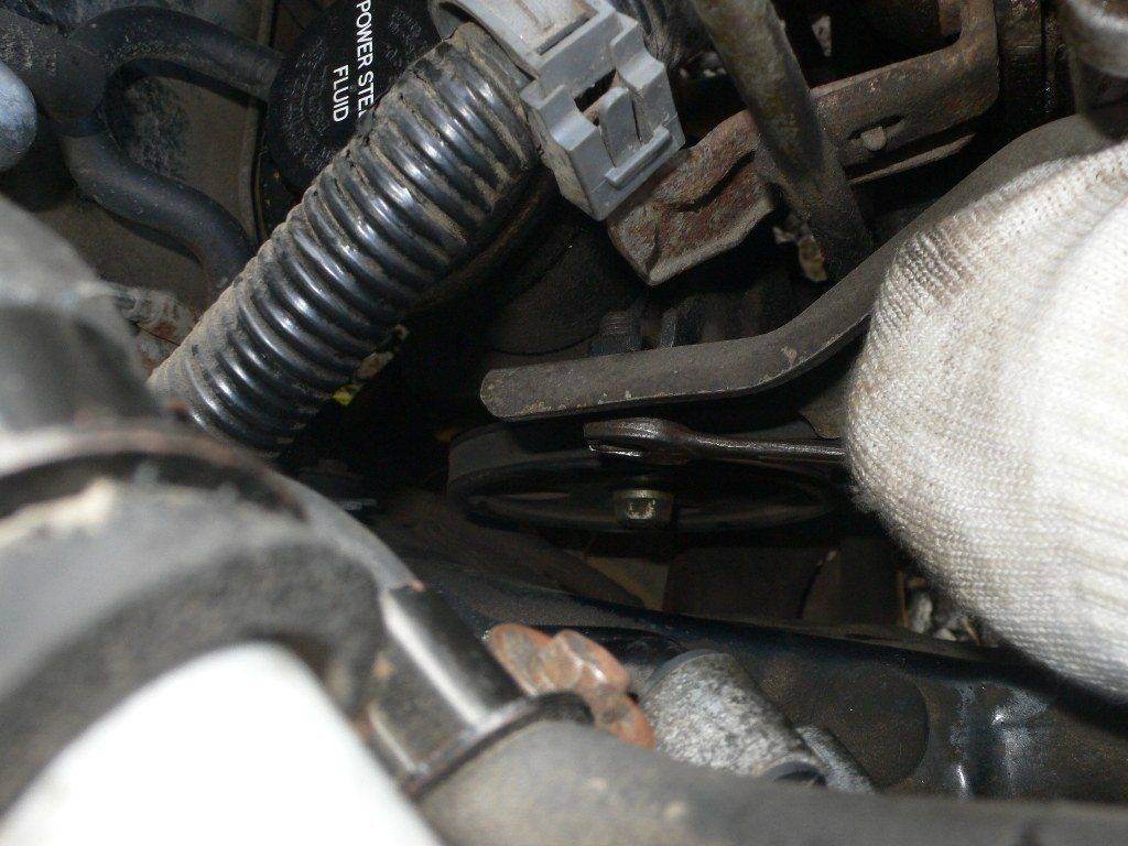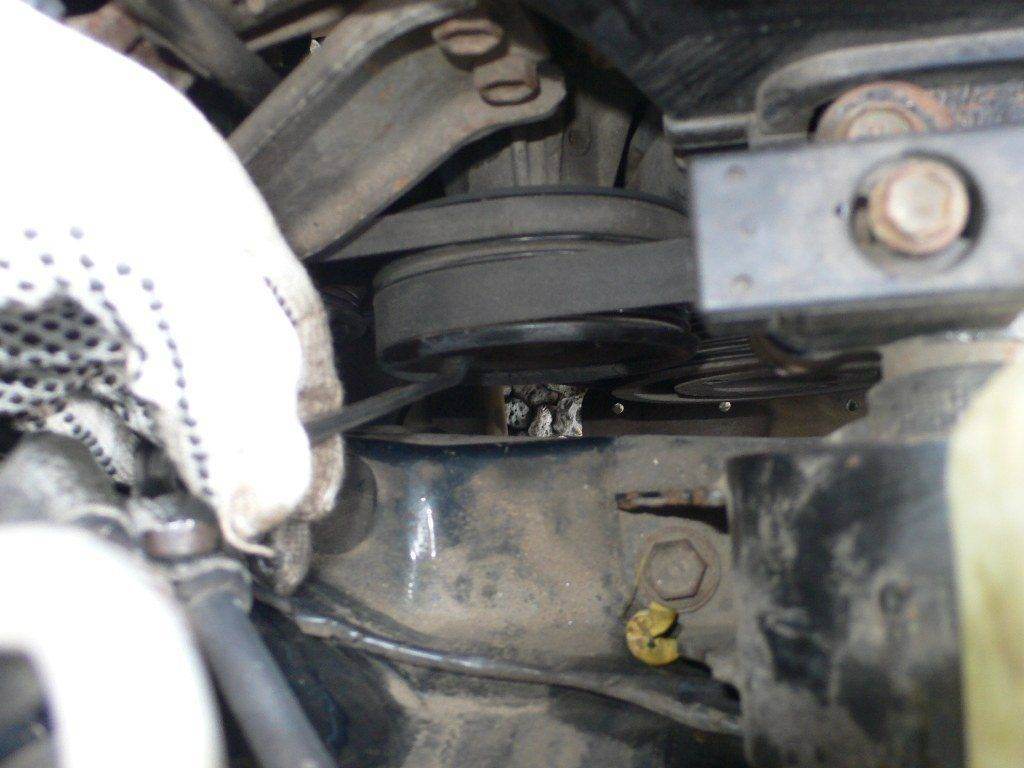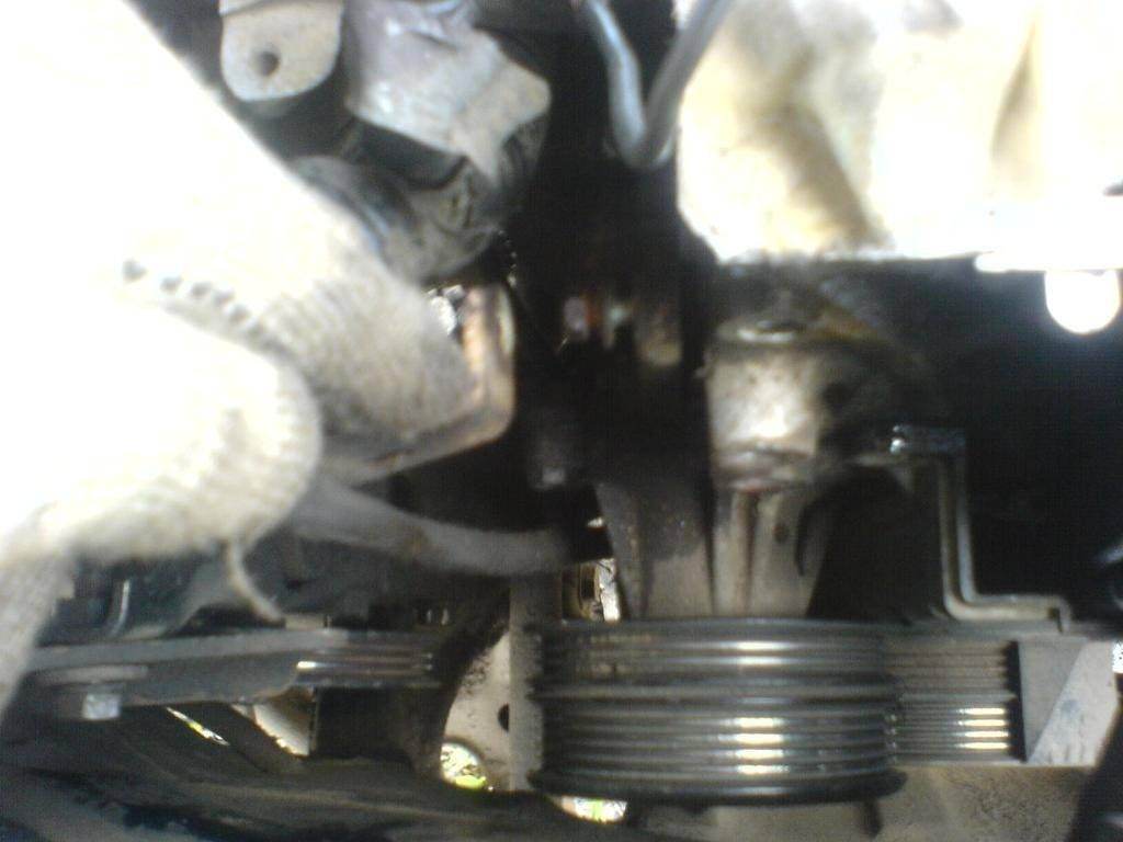 Если фотоотчет кривой, сильно не пинайте) На фотике села батарейка, поэтому его хватило только на первые 5 снимков, остальное снимал сотовым..)) Первым делом, пока на месте все ремни решил сорвать болтики на шкиве, 4 шт. ключиком на 10, потом при снятых ремнях неудобно. Далее снятие ремней, на генераторе ослабил 2 крепежных, регулировочным расслабил ремень. Далее ремень гура, ослабил сверху регулировочный и снизу крепежный (предвариельно сняв колесо и правый защитный кожух) Открутил кронштейн крепления щупа, и вытащил его из двигателя. Открутил кронштейн, в котором регулировочный болт ГУРа, от ГБЦ. Для того что бы грязь не попала в поддон через отверстие щупа закрыл бумажной пробкой. Снял ремни. Снял крышку ГБЦ(был приятно удивлен чистотой и отсутствием налета), без снятия крышки ГБЦ не снять пластмассовый кожух, который закрывает ремень ГРМ. Накрыл от пыли тряпочкой ГБЦ. Отрутил 4 болта этого пластмасового кожуха, верхний снят,нижний открутил, но снять его не дает шкив помпы, снимаем шкив(тот еще гемор) Открутил подушку двигателя ту что около ремня ГРМ. И с помощью домкрата, 2х отверток, 2х рук и такой то матери кое как вытащил шкив. снял нижнюю крышку. Слил всю жидкость с радиатора. А вот про жидкость в блоке я забыл..)) Открутил все болтики крепления Помпы, тут то я и вспомнил про жидкость в блоке.. ))) вытекло прилично..Снял помпу, оставив впокое резиновый шланг с хомутами и второй половиной помпы. Я так думаю что придет как раз половина, а не вся всборе) Заказал Aisin цена 1350р срок доставки 1 день, собирать буду завтра.