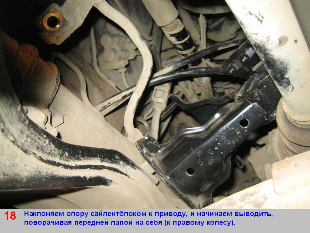 ZLOy писал(а): у нас все сложнее и не откручивая хотя бы с 1й стороны подрамник вообще никак... шпильки длинной 3см, а выходят только на 1см...(зад опора).. так-что у кого карина2, лучше без лома не ходить менять заднюю опору  Да помню такое дело очень давно било, но я полностью откручивал подрамник в итоге вставка по диаметру не подошла, пошел менять сказали через 1-2 недели, помыл подушку залил поэтапно аквариумным герметиком собрал отъездил 3-4года, поменял подушку когда делал капиталку на вставку RBI отъездил 1,5года 22000км и она превратилась в клочья, боковые тоже на грани. Хочу поменять купил зад оригинал, боковые галимые вставки RBI. Если не сложно что конкретно ты ослабил или открути по этой схеме чтоб вытащить подушку у меня так просто не получилось, снимал полностью с рейкой