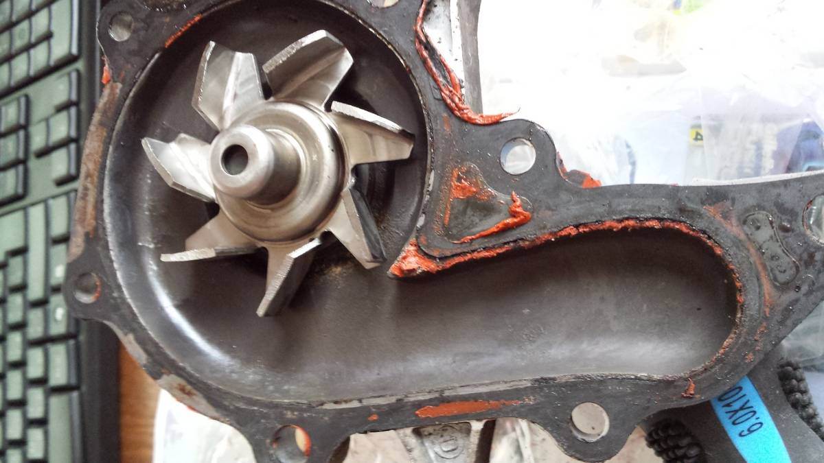 Меняли мне на днях помпу, заменили только половину, хотя отдал новую в сборе GMB GWT-83AH, но вроде все подошло, никаких посторонних звуков нет. Посмотрел что за помпа стояла, читаю, а там какой-то "Аллам" по-русски! ))) полез гуглить оказывается это Aisan, и правда, присмотрелся Aisan там написано  - вроде как это оригинал, что с завода ставили. На старой сальник видимо потек, т.к. подтеки антифриза у отверстия, хотя антифриз из системы не уходил. А крыльчатка вообще выглядит как новая )