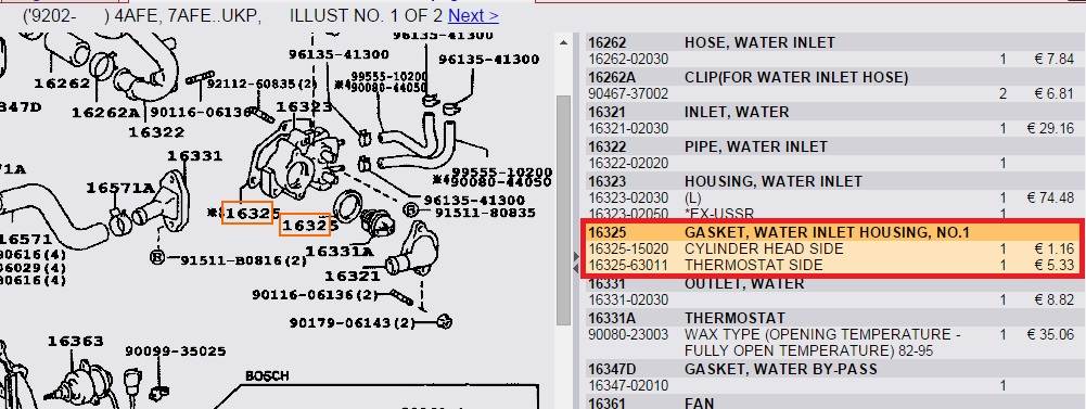 a_berger писал(а): по этому номеру пришло большое резиновое кольцо, куда его надеть Это видимо прокладка которая на сам термостат одевается тебе пришла, а тебе как я понял нужна прокладка между ГБЦ и корпусом термостата, странно как то, номер тебе дали верный, в каталоге под этим номером идет то что тебе нужно, подписано: "16325-15020-CYLINDER HEAD SIDE" сторона головки - то что нужно,"16325-63011-THERMOSTAT SIDE" сторона термостата - то что пришло,Вложение: