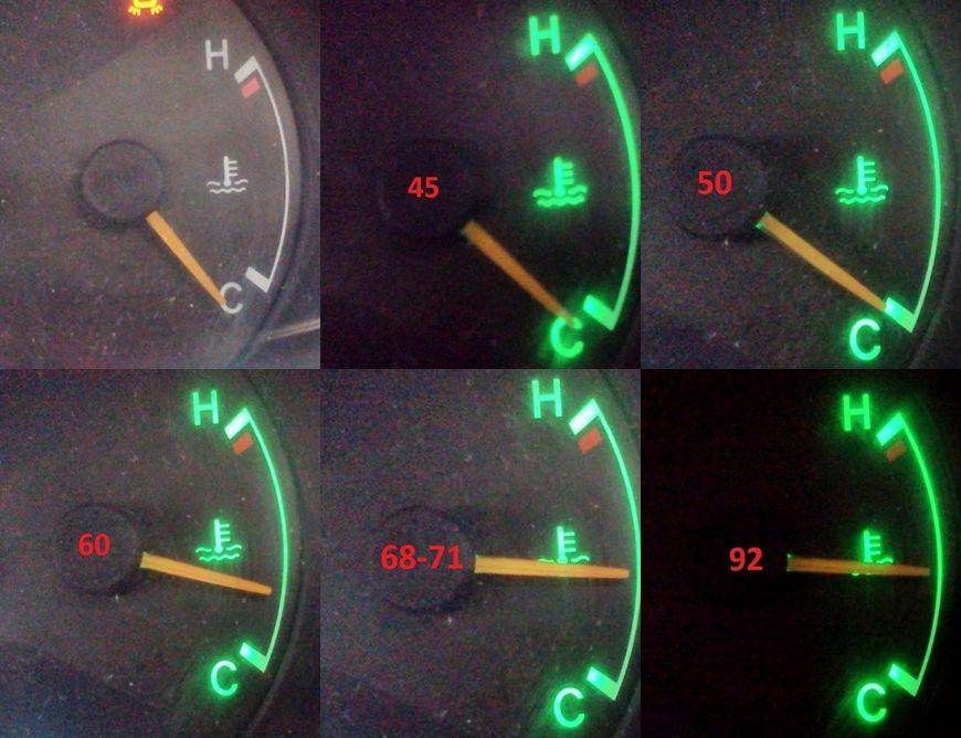 на моей стрелка повыше будет чем на фото при 92 градусах - четко на 3 часа показывает. Как бы не перегрев