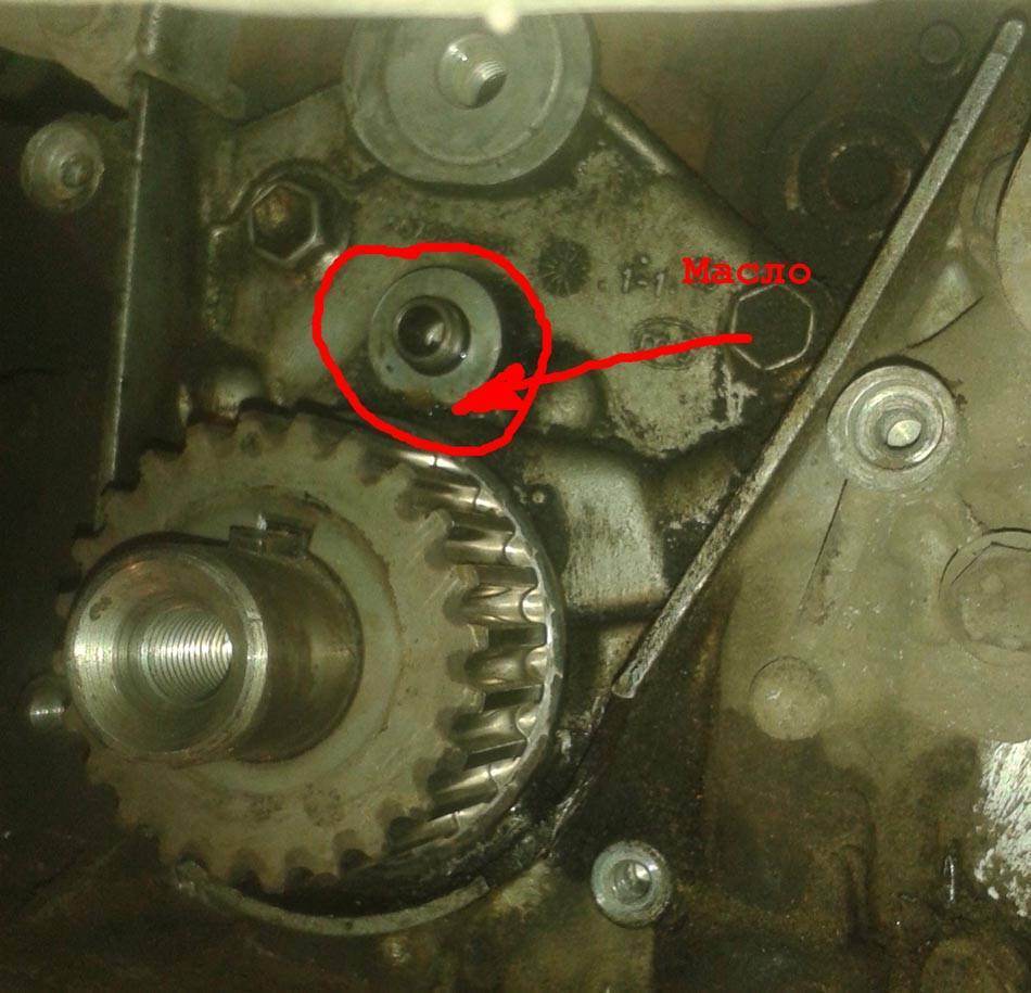 Всем ПРИВЕТ!!! Сегодня менял ремень ГРМ и обнаружил масляную лужу под фиксатором для Ролика натяжителя. Вытираю, а она опять лезет, при чём ощущение, что лезет из отверстия этого фиксатора. Подскажите - куда, чего и как.