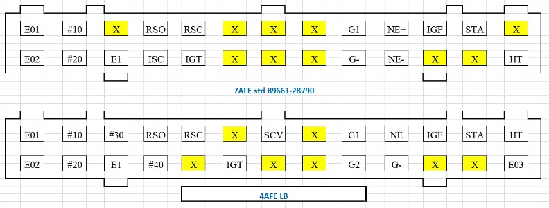 Парни приветствую, Вчера была такая возможность подключить ЭБУ Denso с 7A-FE STD(Toyota celica) на 4A-FE STD, все выходы ЭБУ совпадают, авто заводится. Теперь вопрос, чем отличаются ЭБУ 7А-FE STD от 4A-FE STD и зачем японцы придумали еще один ЭБУ с наименованием 7А-FE? Или все же какие-то отличия есть, если есть, то какие?