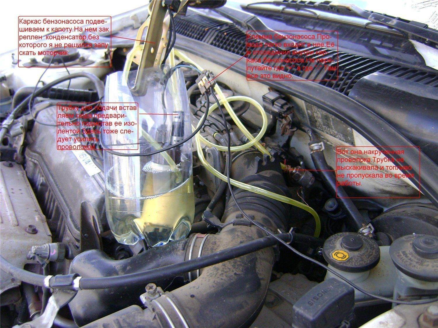 Комментарий к файлу: 1 - обратный клапан 2 - штатный топливный фильтр 3 - волговский бензонасос 4 - обратка в банку