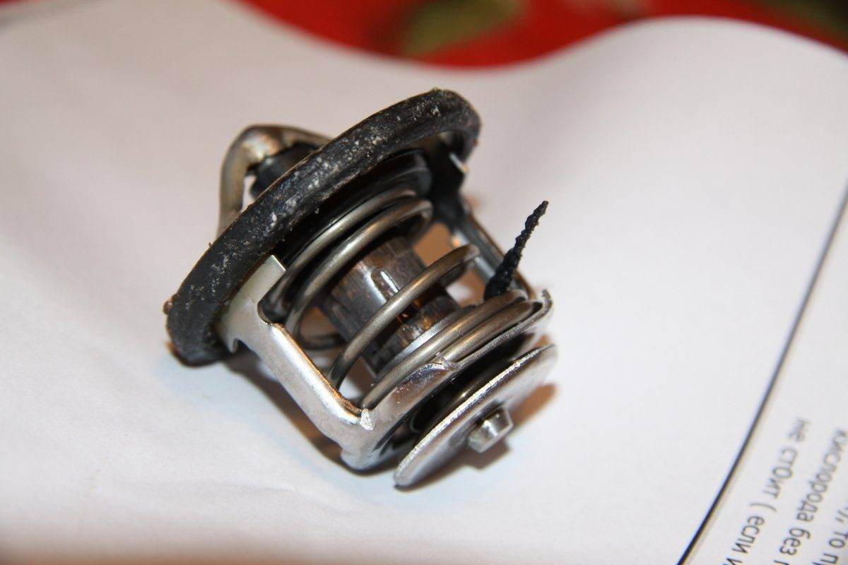 Обнаружил на снятом термостате какую то резинку торчащую из него. Толи в системе плавала какая то дрянь, или отвалилось с самого термостата. И еще на термостате видно что внутренности терлись друг об друга, когда открывался, что уже радует (думал заклинивший).