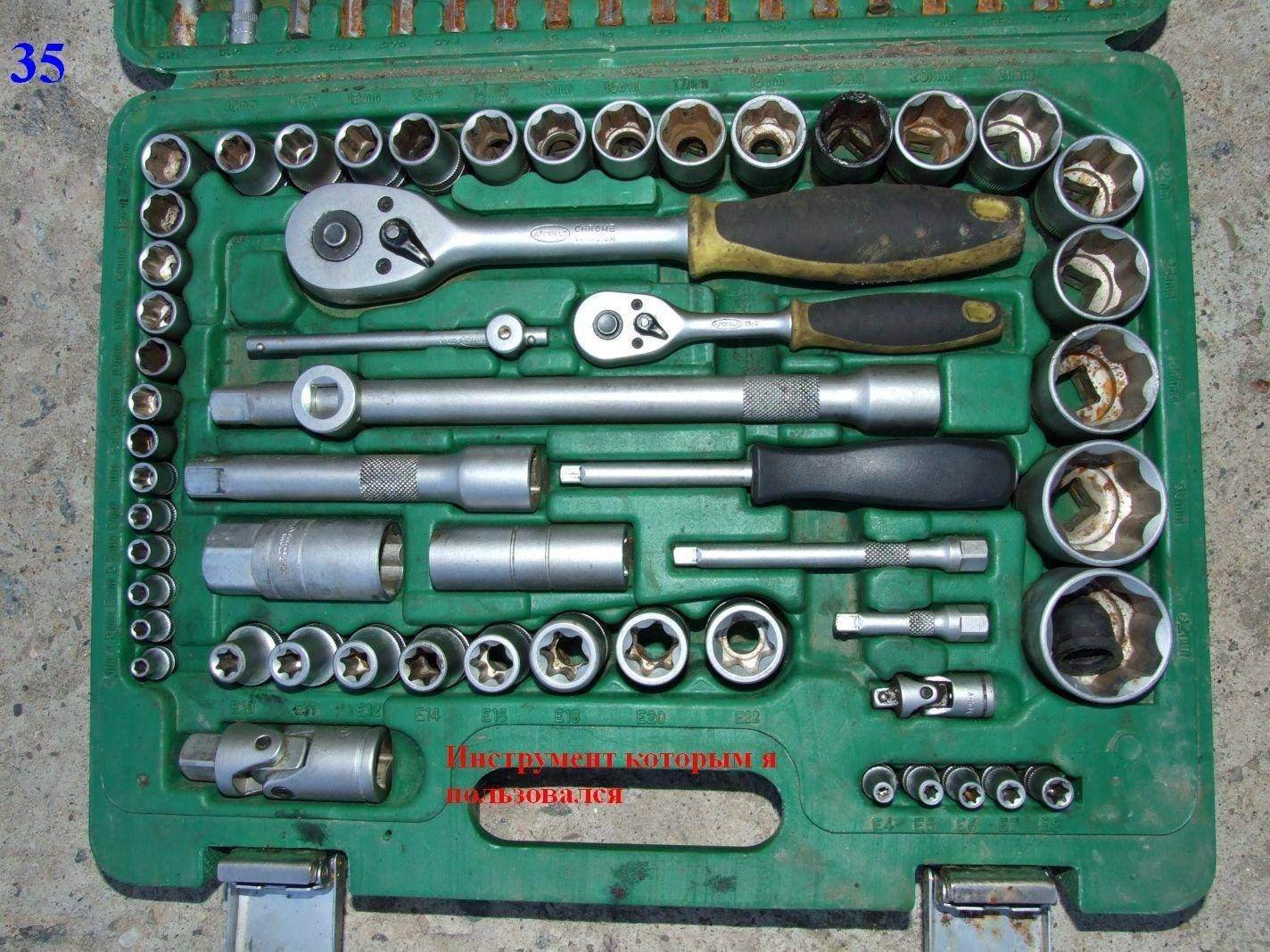Набор накидных-рожковых, набор головок, да трещетка.