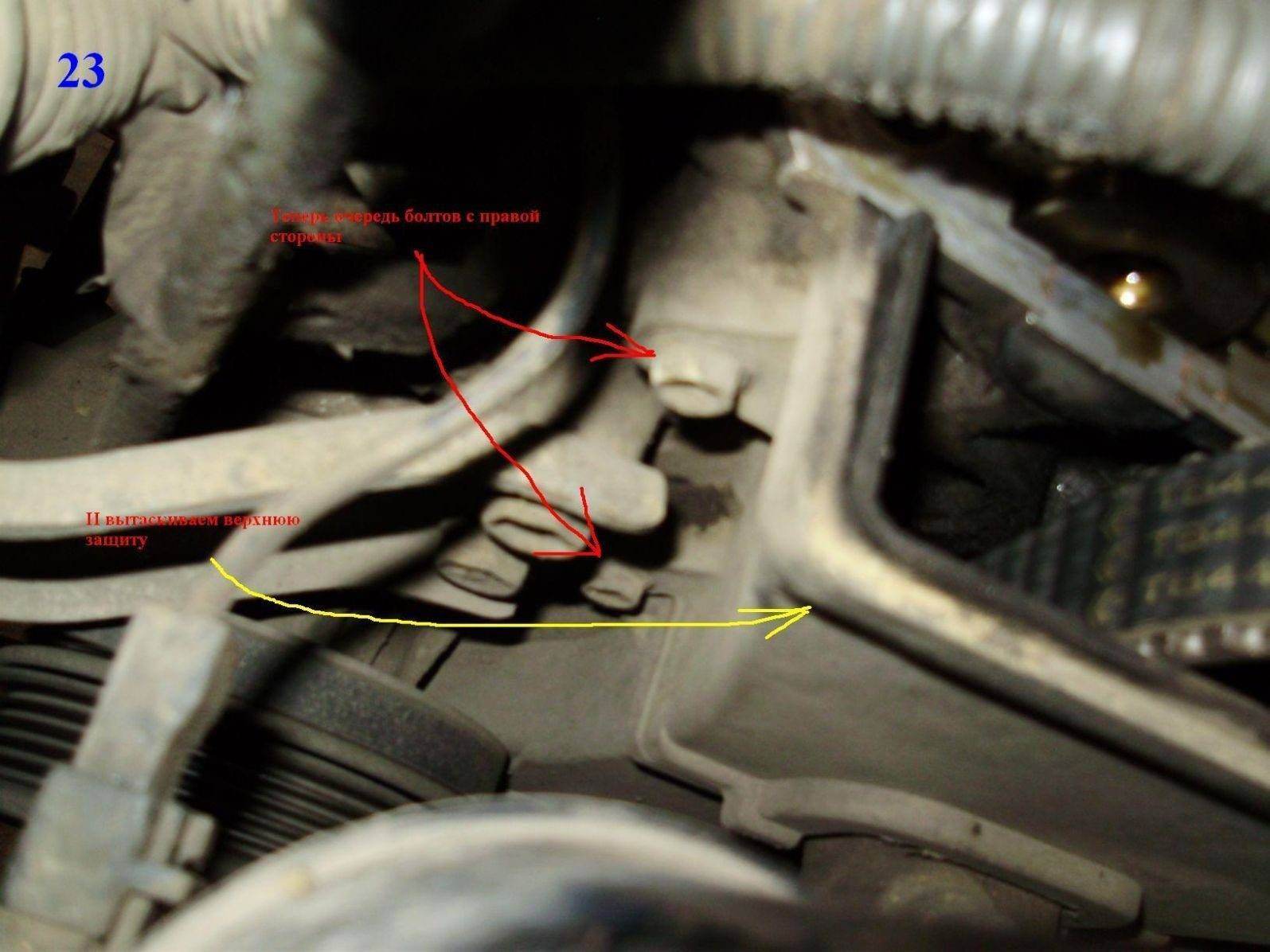 В ФАК не надо, это просто всё для ознакомления т.к. фотки не все и сразу скажу, что шкив помпы не снимал, у меня у средней части защиты ремня ГРМ отломано было нижнее крепление и она была немного треснута, и поэтому вылезла, и встала без проблем, а у кого с защитой всё ОК придётся наверное снимать шкив. Ещё от части почему фотки не все, т.к. мыльницу у племянницы взял в трудно доступных местах фоткать, а она чёт заглючила, а моим фуджиком туда хрен подлезешь. Фотки замены сайлента передней опоры двигателя не стал выкладывать, там всё элементарно просто.
