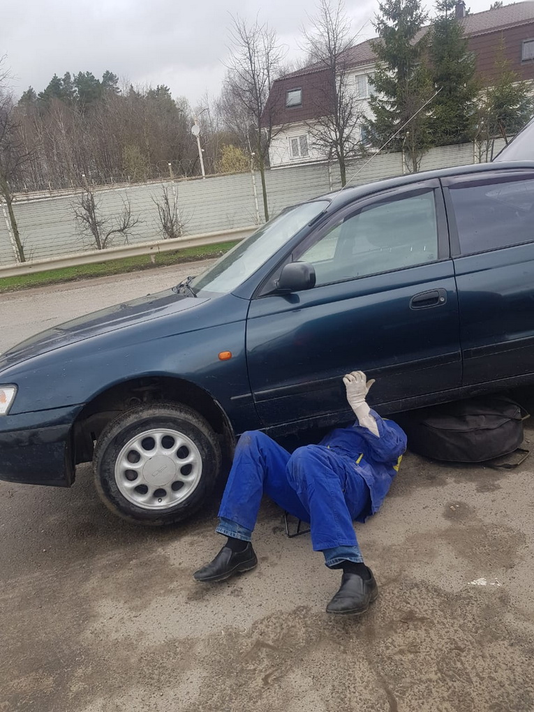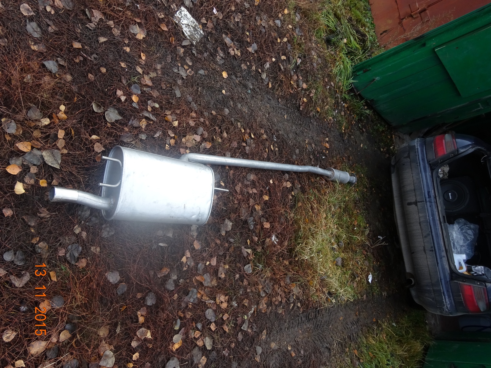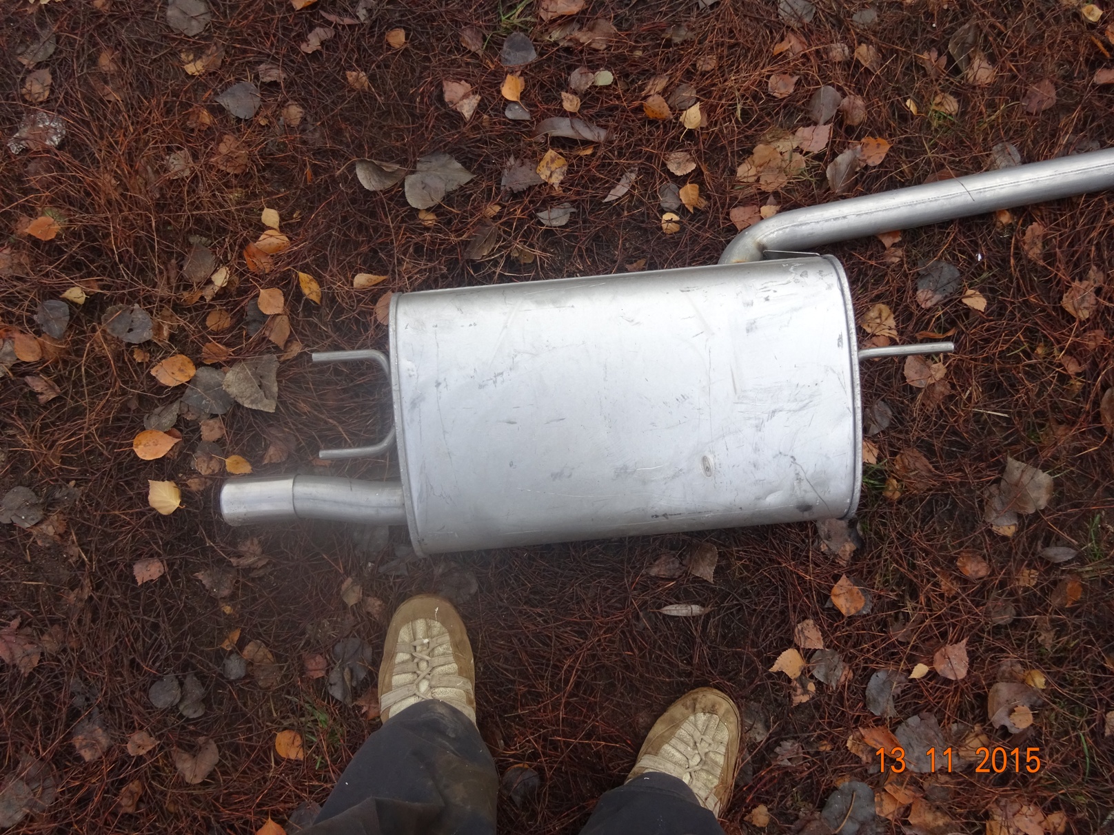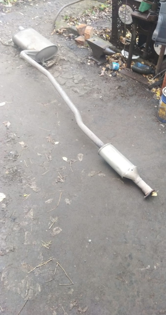 ну вот и до катался! Ехал я тут как то ну по очень плохой дороге! Кочка на кочке, ямка на ямке, колдоебина на колдоебине! И вдруг рев как от реактивного самолета! Ищу более менее ровный участок без глубоких луж. Заглядываю вниз и нате вам здрасьте! Рев от меня. Далее еду ну очень аккуратно до ближайшего асфальта. Домкрачу, нахожу в багажнике запасную проволочку. Приматываю. А далее как на прямотоке! Люди пугались. Приехал домой и начал обзвон. Нашел неподалеку мастера. Договорился переварить оба соединения. Фланцы были куплены заранее. Три часа работы и снова тишина в салоне. Чел работает в Ясенево, варит аргоном разные выхлопы. Сам их создает. Если надо. пишите дам телефон. Во время работы обнаружилось что на родном глушителе сделана труба в трубе! Это зачем же они так японцы делают?