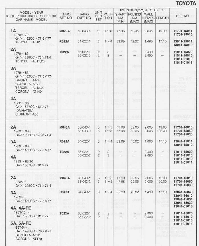 Сергей MerTV, Спасибо за помощь, т.е для наших двигателей (4А-FE STD): Шатунные: Taiho R043ASTD Коренные: Taiho M043ASTD Я правильно все понял?