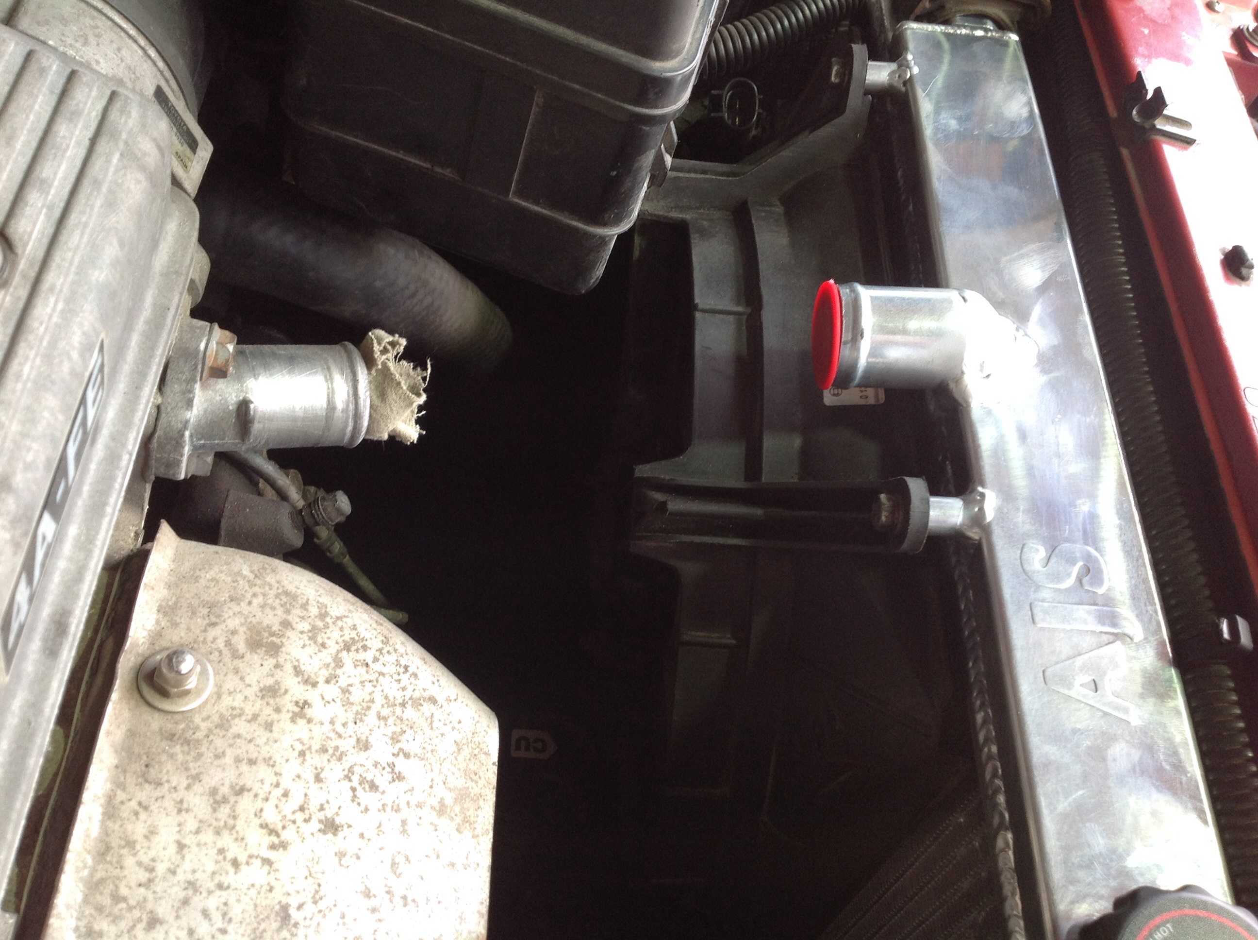 После установки пробки обязательно проверяем ее рабочее давление. Если нет стенда, проверку можно сделать на машине. Для этого, снимаем 1 из патрубков подогрева дроссельной заслонки, вмантуливаем туда переходник под шланг компрессора для колес. Песюн закрываем кусочком шланга d=6мм и подходящей затычкой. Антифриз можно не наливать.